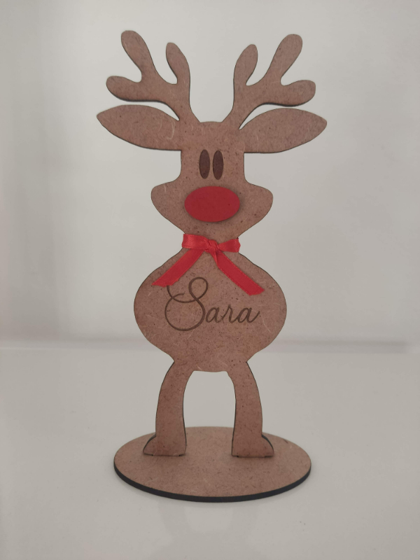 Reno navideño en madera personalizado con el nombre, opción ideal para decorar la casa en Navidad o regalar a familiares y amigos.